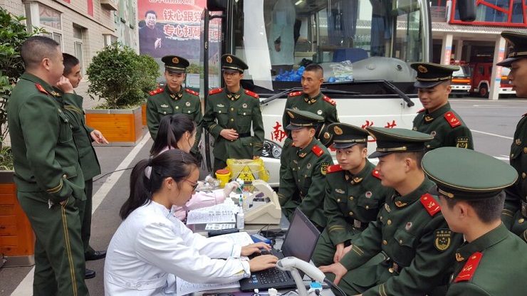 当天上午10时许,市中心血站的采血车驶进巴中市武警消防支队营区,40多名消防官兵自发来到献血车旁,有条不紊地填表登记、检查、快检、采血。短短一个上午,官兵们成功献血36人次,累计献血13700毫升。