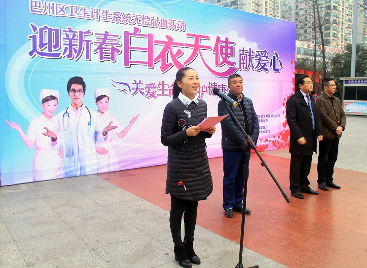 1月17日,巴州区在巴人广场举行了“迎新春白衣天使无偿献血”活动,区人民政府副区长李梅,区卫生计生局党委书记、局长罗友军,市中心血站站长闫童生等领导及200余名医务工作者参加了此次活动。