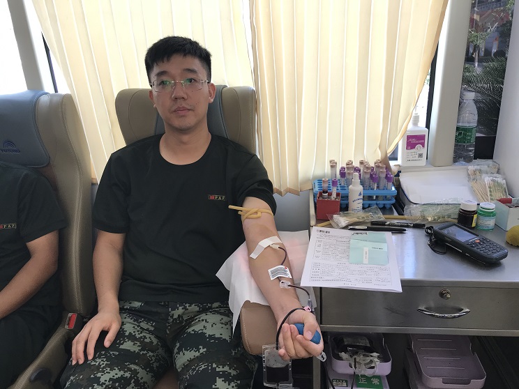 在采血现场,连续的高温天气丝毫没有影响武警官兵们的献血热情,他们在工作人员指导下,测体温、手消毒、填写表格、健康征询、测量血压、快速检测等。符合献血要求,逐个走上采血车挽袖捐献热血。献血队伍中,有第一次献血的“新兵”,也有连续多年参与的“献血老兵”。他们用一袋袋鲜红的血液为驻地人民做贡献,为“第二故乡”献爱心。以实际行动为巴中市人民群众的身体健康保驾护航。