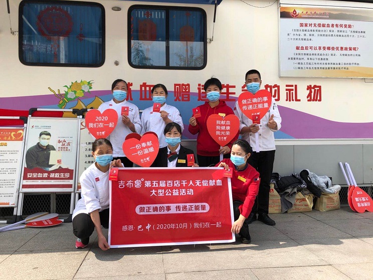 2020年10月29日,吉布鲁百店千人无偿献血活动如期举行,这已经是吉布鲁连锁店连续第五届开展无偿献血大型公益活动,他们通过开展无偿献血的方式,回馈社会,用自己的热血去帮助更多需要血液挽救生命的患者,温暖巴城。